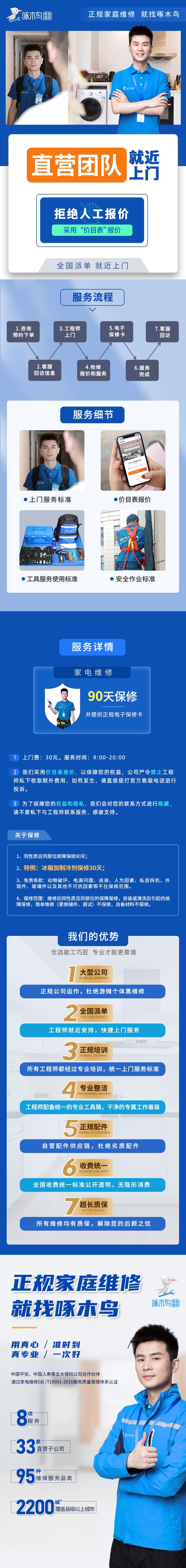 费用说明: 1、30元仅为预付款,非维修总价。 2、维修总价=30元预付款+维修费+配件费 服务描述: 1、工程师上门后因用户个人原因取消订单,支付的30元预付款充当上门费。 2、该价格信息仅供参考,师傅上门检测后,具体收费以工程师上门检测后根据实际故障及维修情况进行报价。 注意事项: 1、服务过程中,若师傅出外墙作业,需加收高空作业费,3楼及以上100元/台,3楼以下不收取高空作业费。 2、由于师傅夜间交通不便,预约时间在22:00-07:00的服务,须加收60元夜间交通费。 服务保障: 1、同性质且同部位故障保修90天; 2、特例:冰箱加制冷剂保修30天; 3、免责条款:动物破坏、电源问题、进液、人为因素、私自拆机、外观件、玻璃件以及其他不可抗因素等不在保修范围; 4、服务时段:9:00-20:00; 5、请勿私下与工程师联系服务,如出现一切问题(费用纠纷、人身安全等)与平台无关。